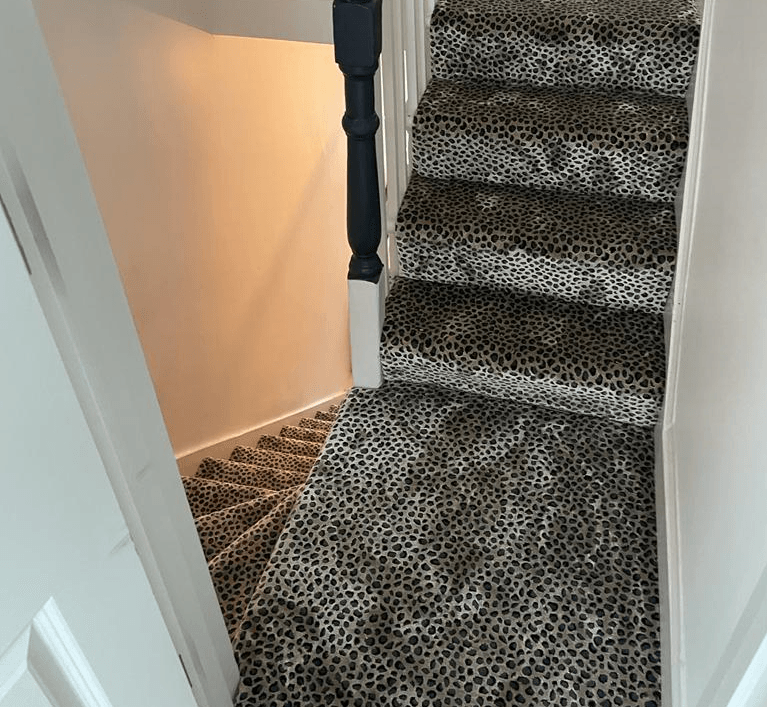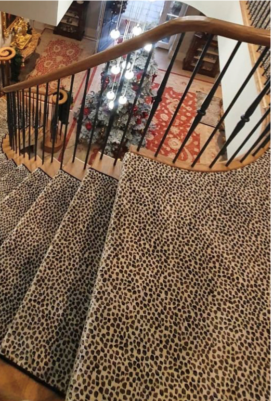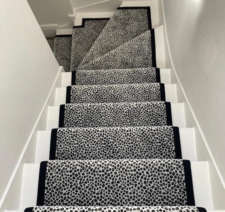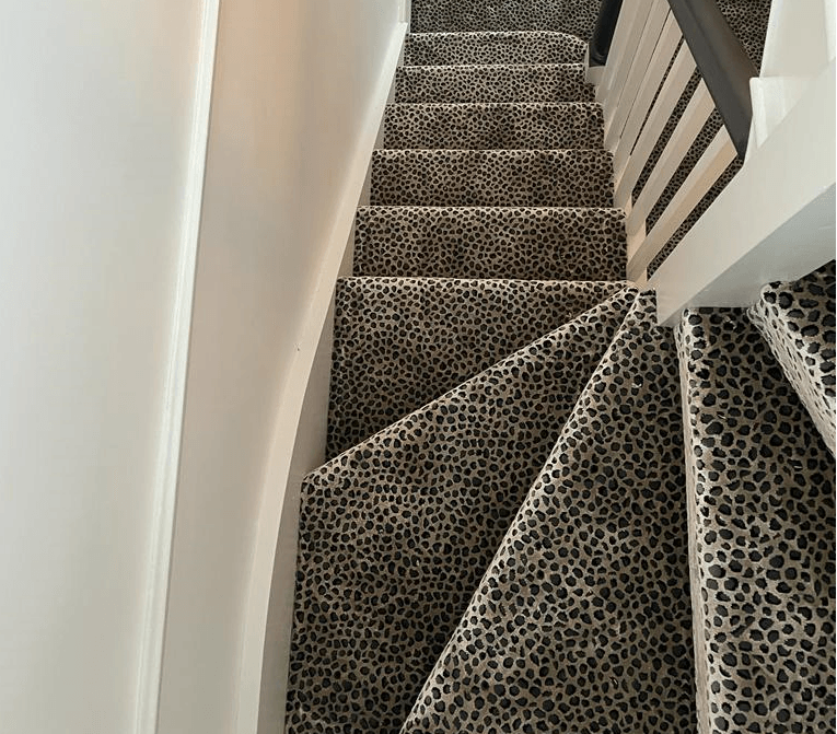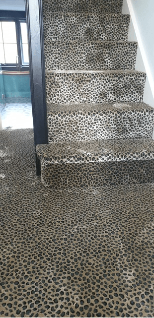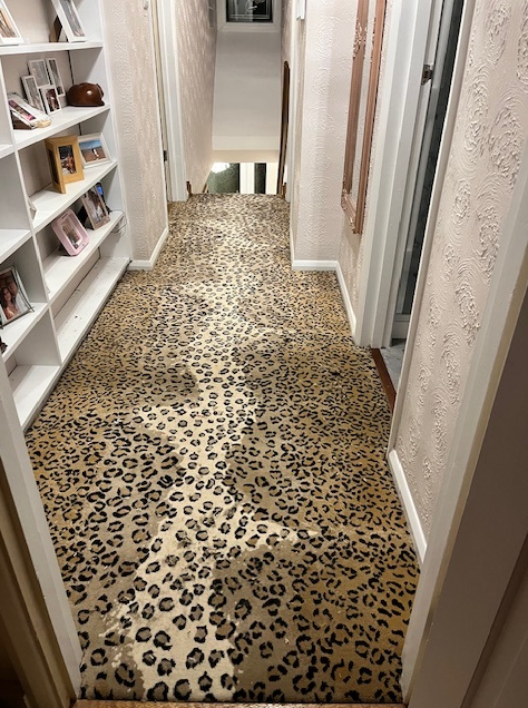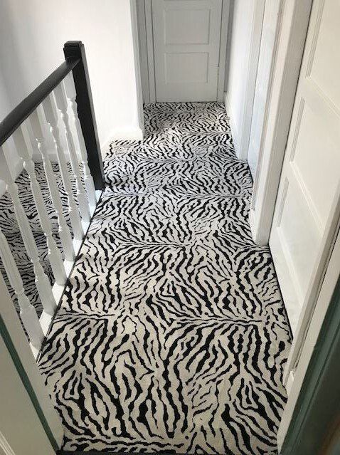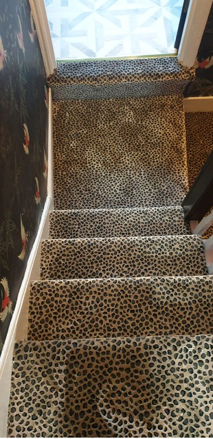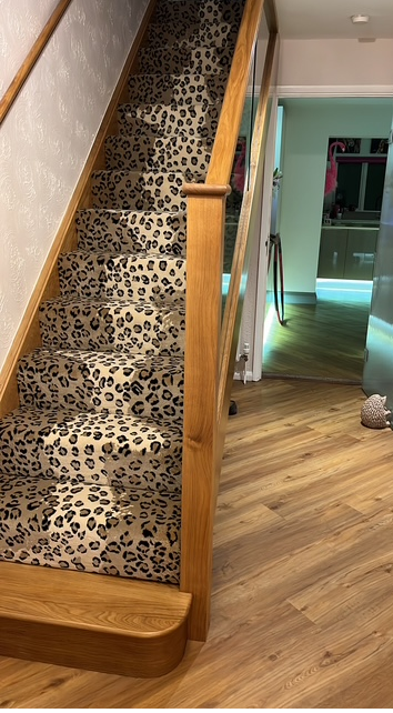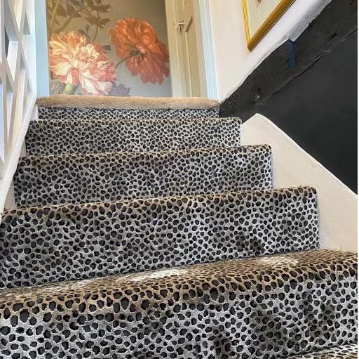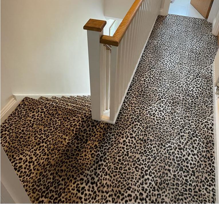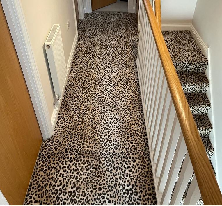 These designs look fabulous in the wild, but how will they look in your home? Have a look at our recently completed installations to see just how stunning animal print floor covering can look on a staircase, in a living room or as a floor covering in the bedroom or even as a rug.