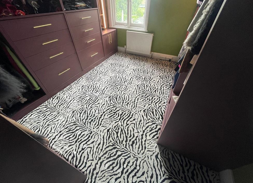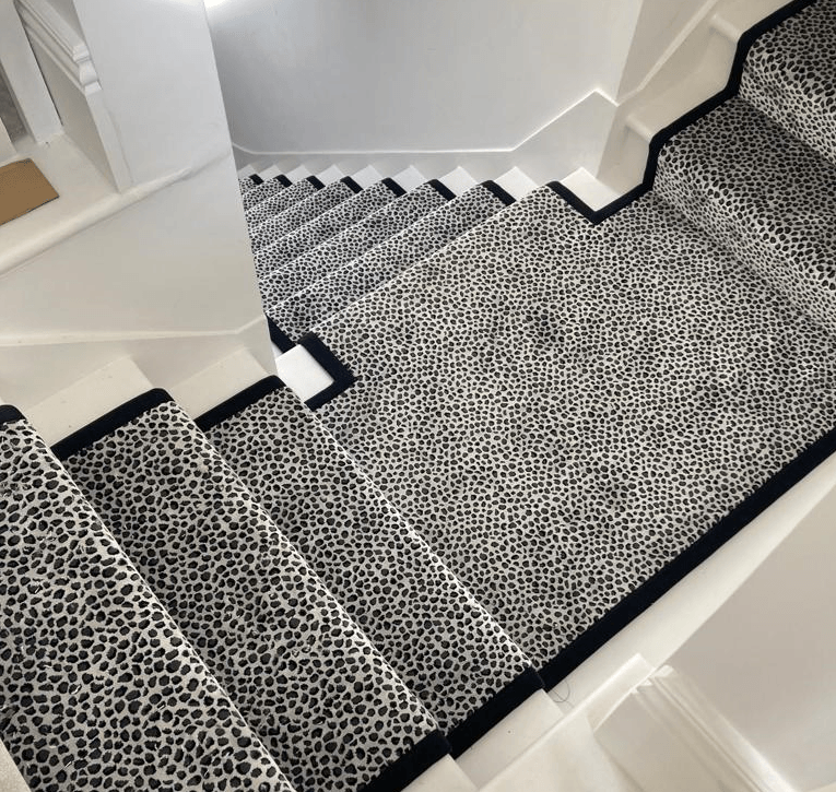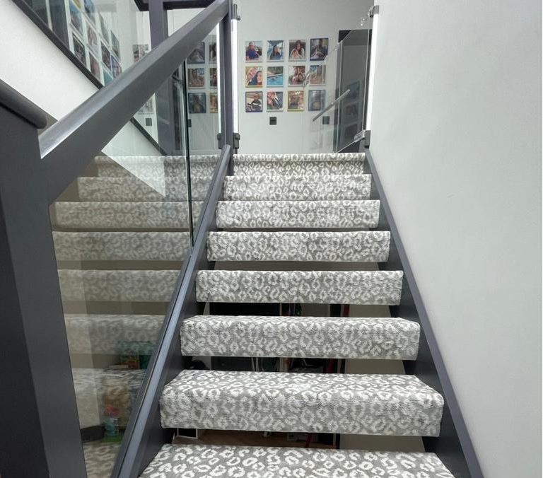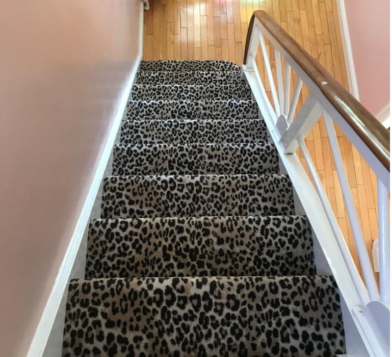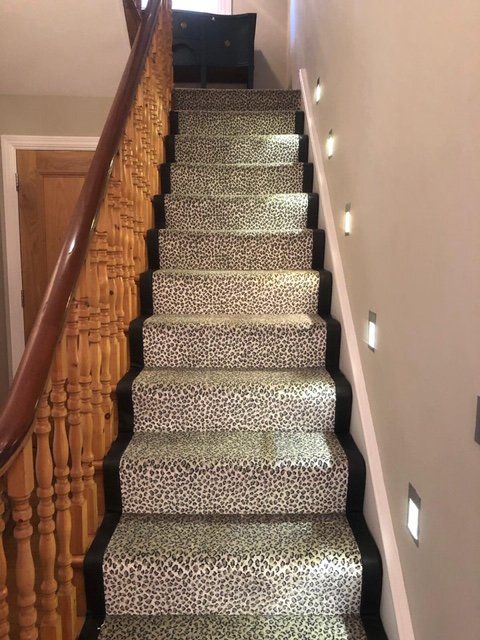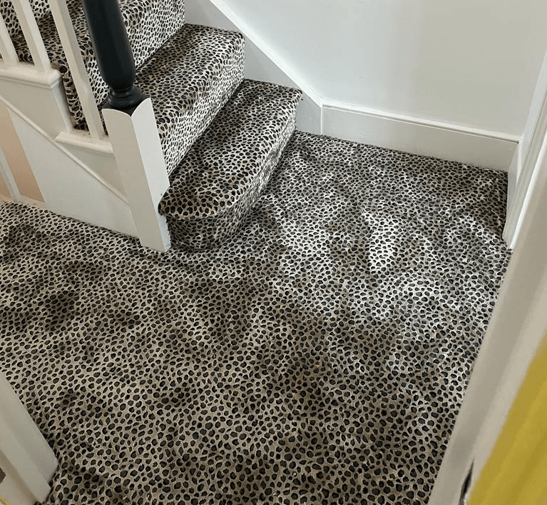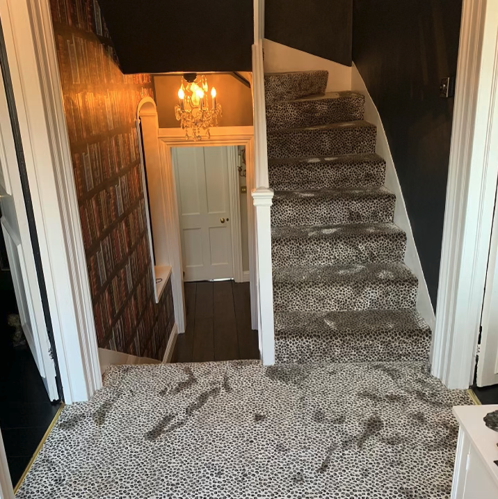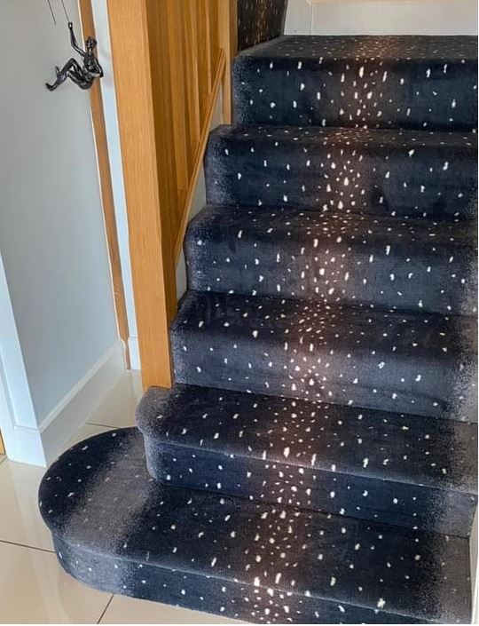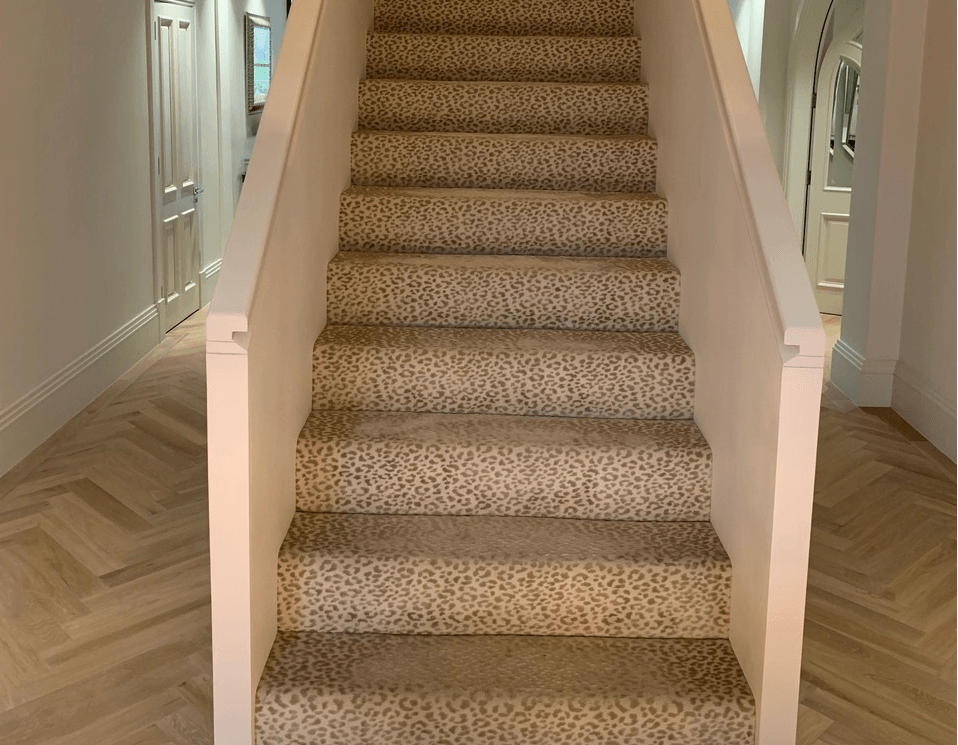 These designs look fabulous in the wild, but how will they look in your home? Have a look at our recently completed installations to see just how stunning animal print floor covering can look on a staircase, in a living room or as a floor covering in the bedroom or even as a rug.