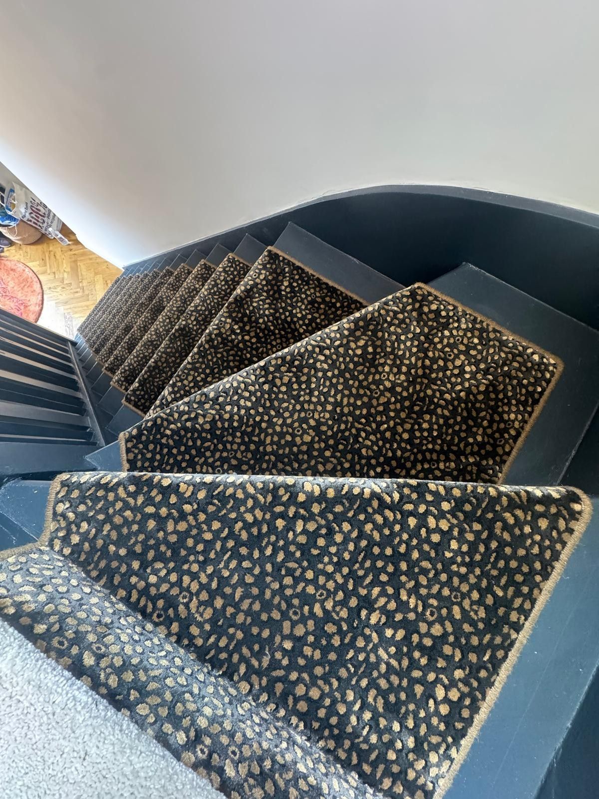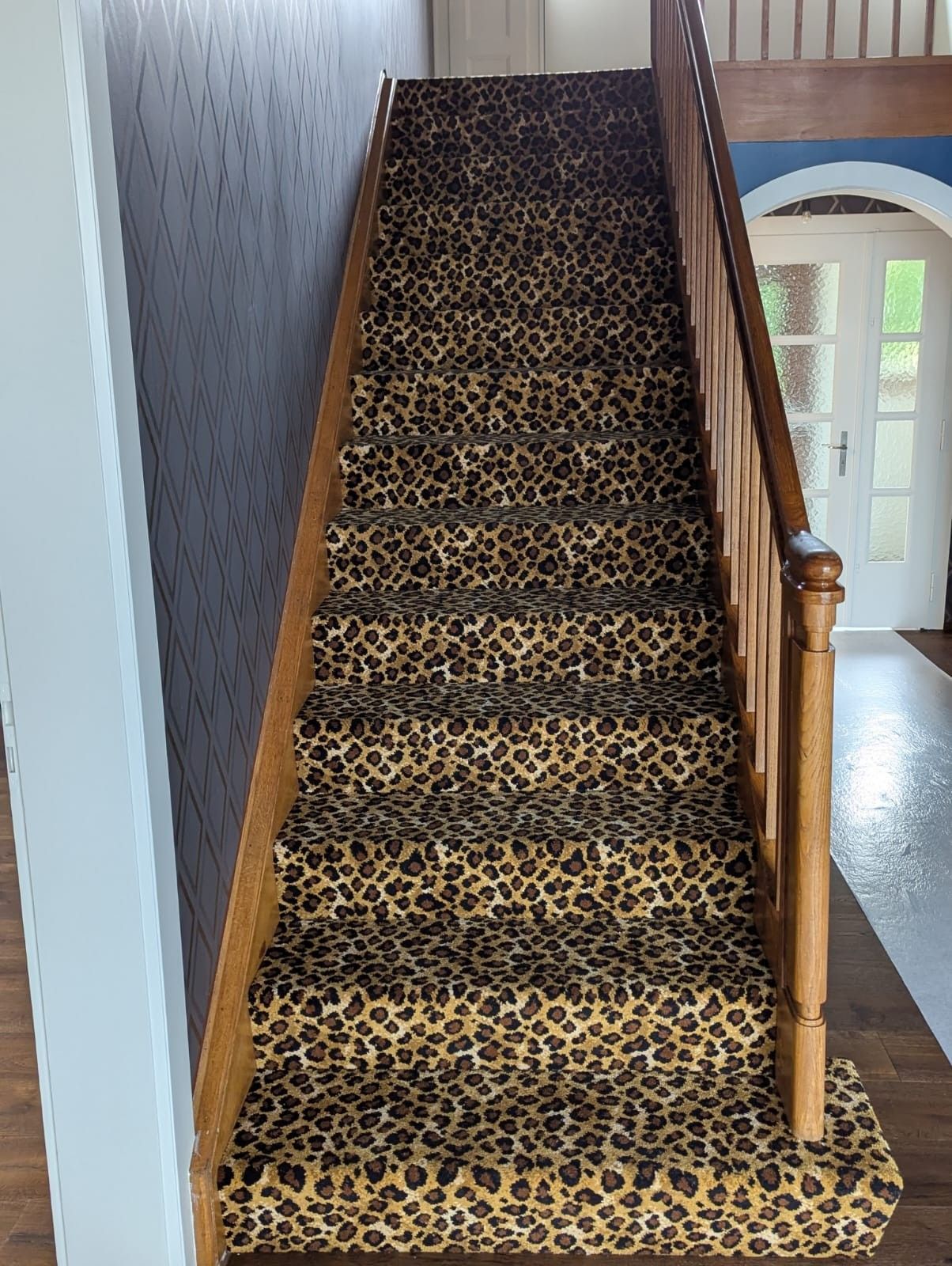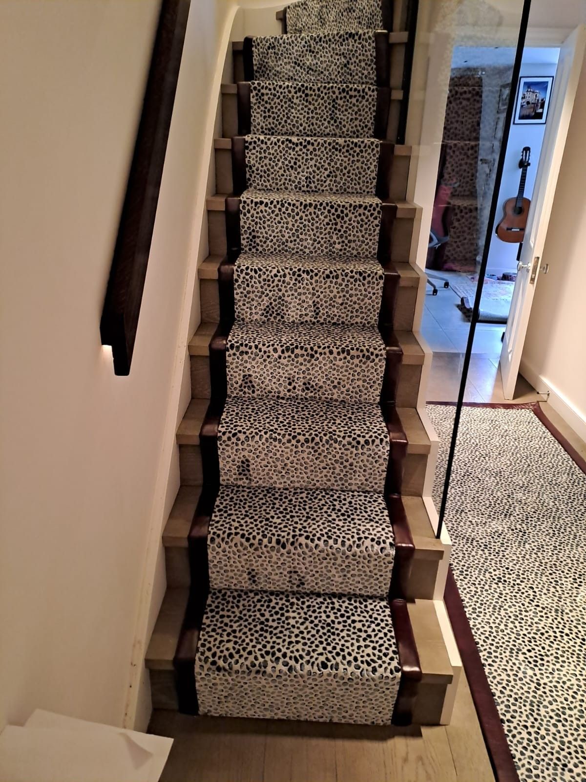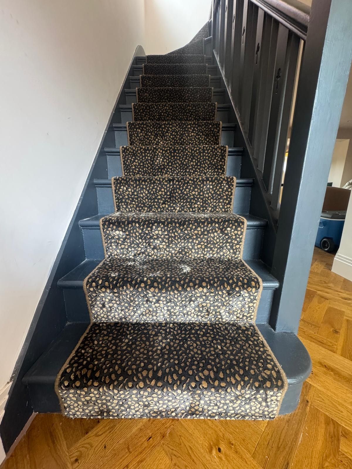 These designs look fabulous in the wild, but how will they look in your home? Have a look at our recently completed installations to see just how stunning animal print floor covering can look on a staircase, in a living room or as a floor covering in the bedroom or even as a rug.